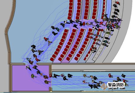 -除了3D模擬視圖,Pathfinder還提供了2D時間關系曲線圖的CSV文件和記錄樓層疏散時間和出入口流通率的文本文件。