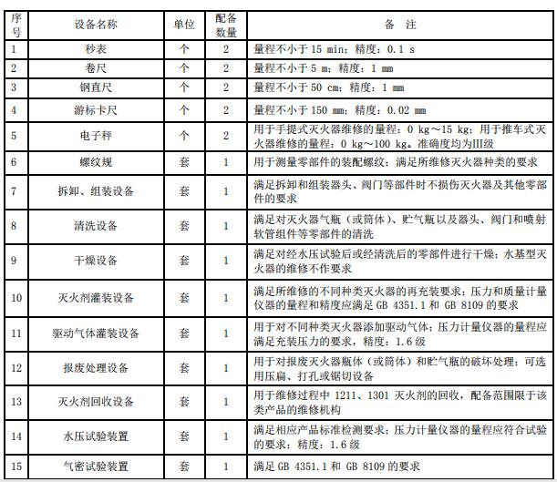 三級消防設(shè)施維護(hù)保養(yǎng)淄博檢測設(shè)備用于滅火器的檢查、維修、更換滅火劑及回收,其設(shè)備配備的種類和數(shù)量至少應(yīng)滿足表 3 的要求。