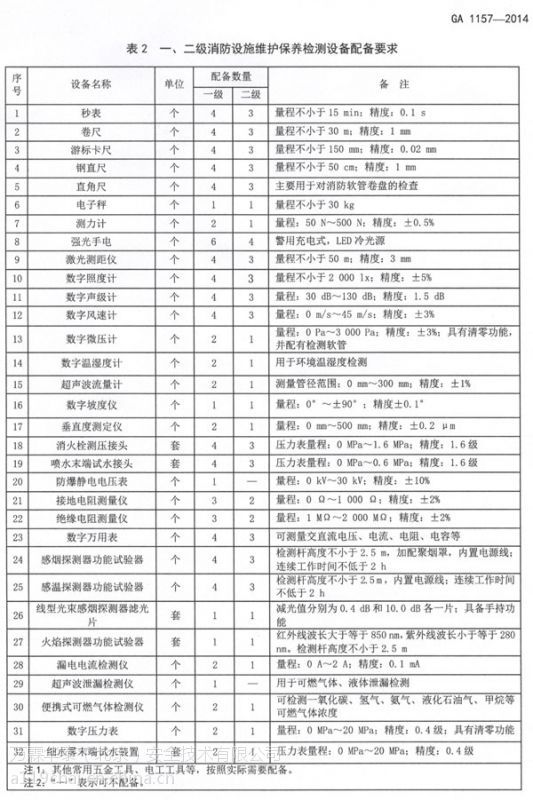 一二級消防設(shè)施維護(hù)保養(yǎng)淄博檢測設(shè)備用于建筑消防設(shè)施的維護(hù)、保養(yǎng)和檢測,其設(shè)備配備的種類和數(shù)量至少應(yīng)滿足表 2 的要求